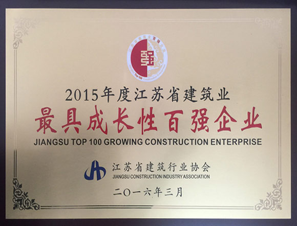 2015 年度江蘇省建筑業(yè)最具成長(zhǎng)性百?gòu)?qiáng)企業(yè)