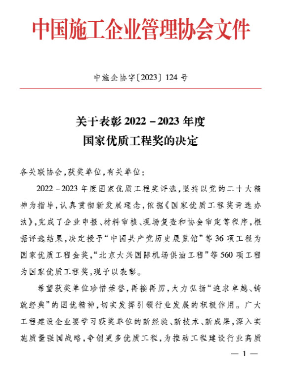 近日,中國(guó)施工企業(yè)管理協(xié)會(huì)發(fā)布2022-2023年國(guó)家優(yōu)質(zhì)工程獎(jiǎng)名單,我公司參建的江海大道東延(綜藝集團(tuán)東-揚(yáng)子江路)工程登榜。
