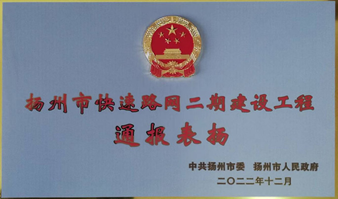 我公司承建的揚(yáng)州市快速路網(wǎng)二期建設(shè)工程獲中共揚(yáng)州市委、揚(yáng)州市人民政府通報表揚(yáng)!
