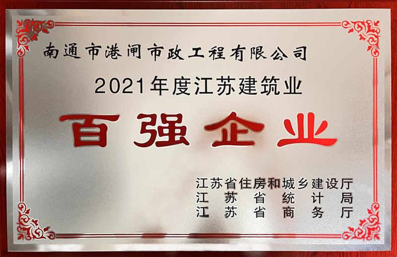 公司被認定為“2021年度江蘇省建筑業(yè)百強企業(yè)(基礎設施類)”稱號,這是我公司自連續(xù)六屆獲評江蘇省建筑業(yè)百強企業(yè)以來,再次獲此殊榮。